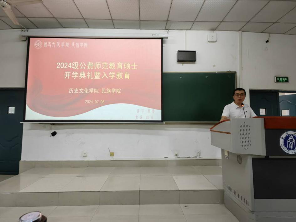 在学校27教101隆重举行2024级公费师范硕士暑期课程开班仪式。来自全国各地的140名新生集聚一堂,共同开启了为期一个月的学习旅程。此次开班仪式旨在激励新生树立坚定教育情怀,明确学习目标,营造良好的学习氛围。